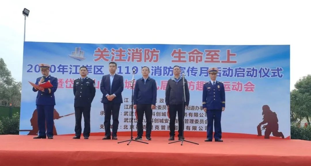 11月6日下午,2020年江岸區(qū)“119”消防宣傳月活動(dòng)啟動(dòng)儀式暨岱家山科創(chuàng)城第九屆消防趣味運(yùn)動(dòng)會(huì)在岱家山科創(chuàng)城足球場(chǎng)隆重舉行。江岸區(qū)各街道辦事處、百步亭社區(qū)、各派出所、街道微型消防站代表隊(duì)、武漢格晟工業(yè)技術(shù)有限公司企業(yè)有幸受邀參加,與園區(qū)內(nèi)企業(yè)代表共500多人參加了本次活動(dòng)。
